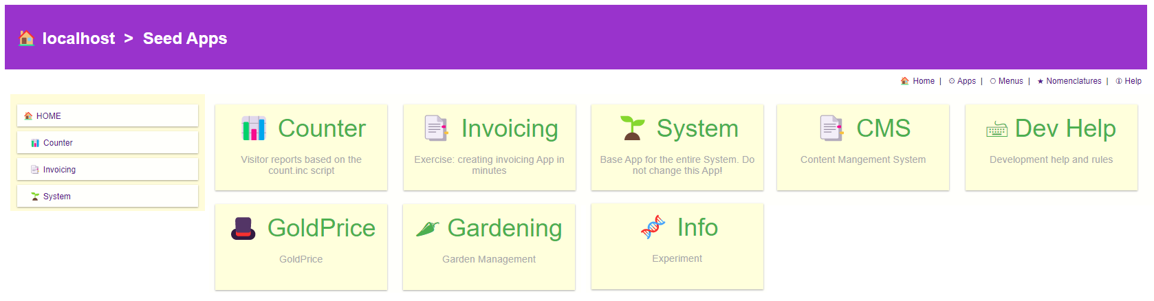 DATA-SEED Apps are displayed in the Home page and left menu: